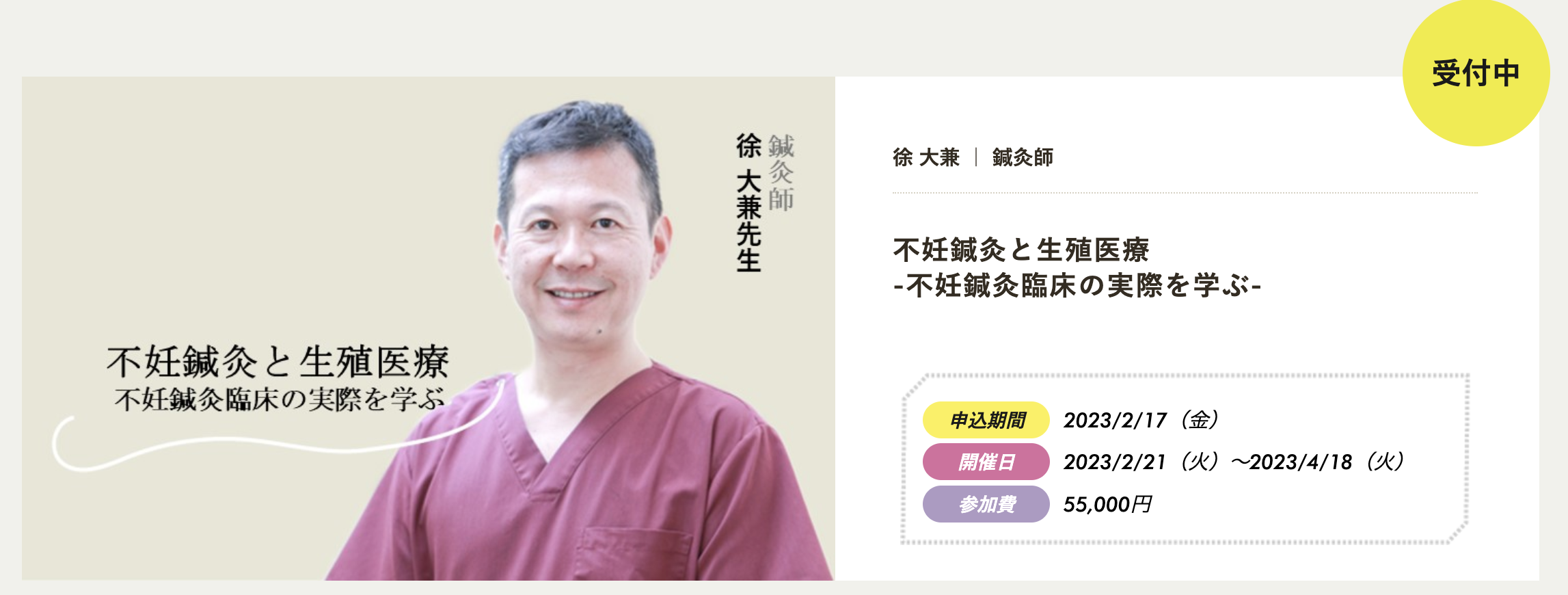 (講師)徐大兼「不妊鍼灸と生殖医療 -不妊鍼灸臨床の実際を学ぶ」