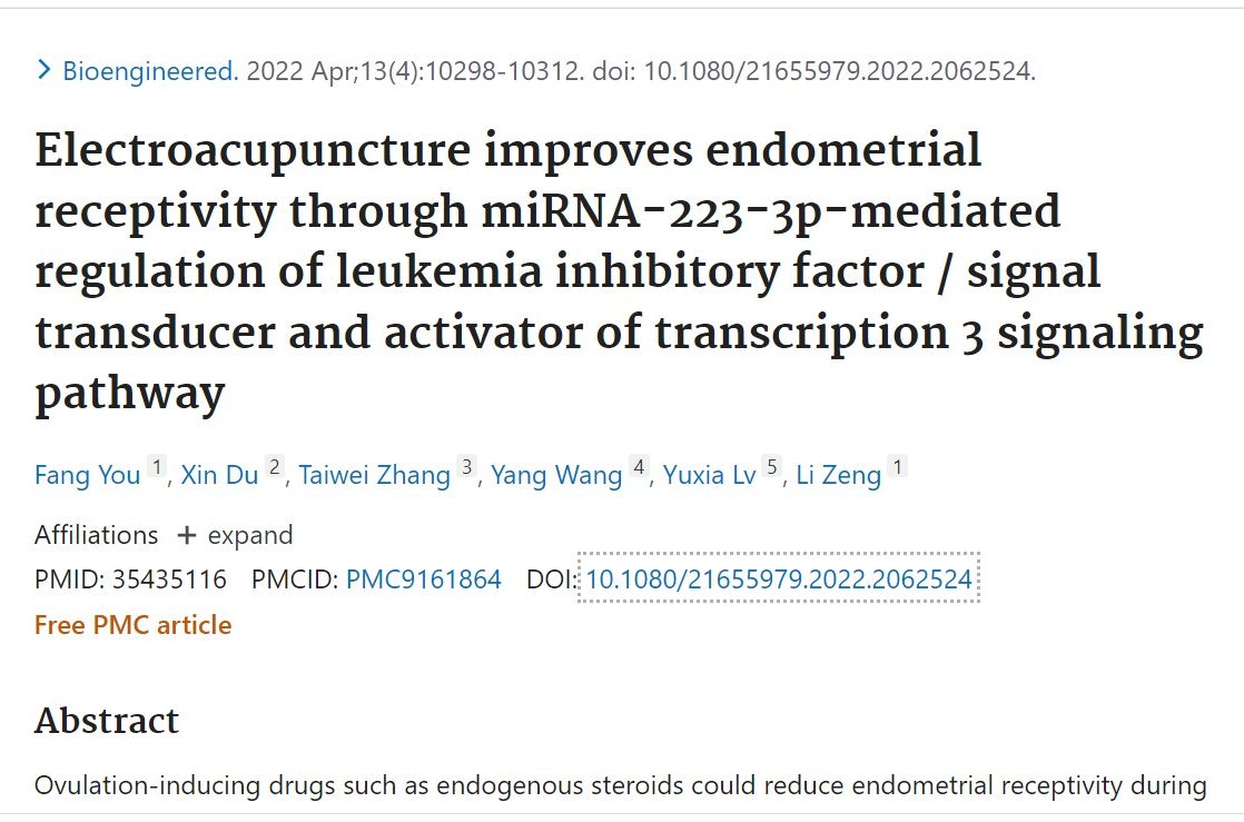 “Electroacupuncture improves endometrial receptivity through miRNA-223-3p-mediated regulation of leukemia inhibitory factor / signal transducer and activator of transcription 3 signaling pathway”
