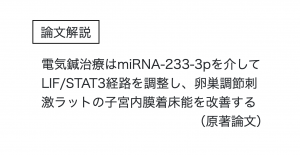 論文解説: 電気鍼治療はmiRNA-233-3pを介してLIF/STAT3経路を調整し、卵巣調節刺激ラットの子宮内膜着床能を改善する(原著論文) “Electroacupuncture improves e […]